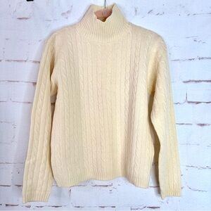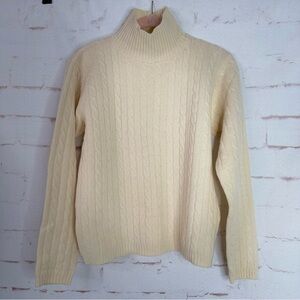 J CREW S 100% Lambswool Cable Knit Sweater Mock Turtleneck Cream Size Small