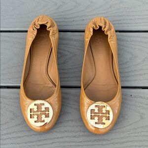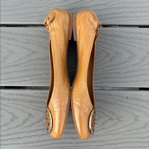 Tory Burch Patent Leather Travel Ballet Flats Tan Size 9