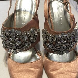 ASOS Shoes SATIN Size 7 Embellished Block Heels.Ankle strap,Pink Papaya Color.