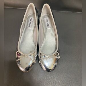 Elegant silver ballet flats perfect for any occasion. These shoes offer both style and comfort.