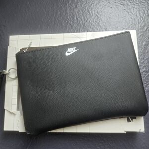 Stylish wristlet bag from Nike, designed to compliment the Nike Blazer sneaker, but versatile enough to go with any look. Features a sleek black design with a striking white accent and detachable wrist strap. Perfect for everyday use. New, never used, box has some damage, but bag is in perfect condition.