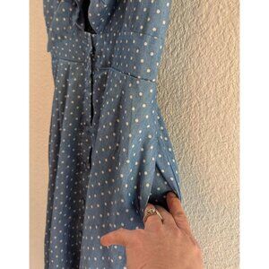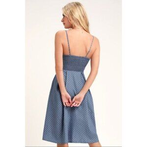 Lulus Bonnie Bell Blue and White Polka Dot Midi Flare Dress Size Medium