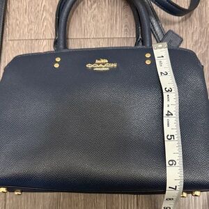 Elegant Coach handbag in classic navy leather. Perfect for any occasion with its sleek design and durable material.