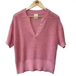 Varley Callie Open-Knit Cotton Top Short Sleeve Button Summer Pink Women’s Small