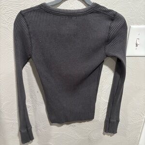 Aerie Dark Gray Fireside Long Sleeve Henley Notch V-neck T-Shirt Size XS