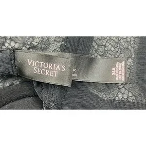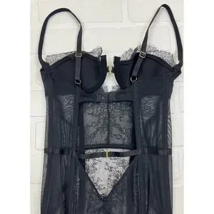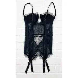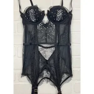 Victorias Secret Black Lacy Rhinestone Embellished Bustier Lingerie Size 34A