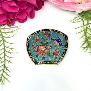 VINTAGE⚜️CLOISONNÉ Butterfly Floral Enameled Brooch