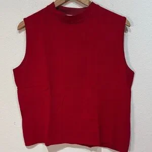 No sign of wear. Chic and bold red tank top by St. John. Sleeveless design for versatile styling. All items have been cleaned and comes from a smoke free home. UUU8