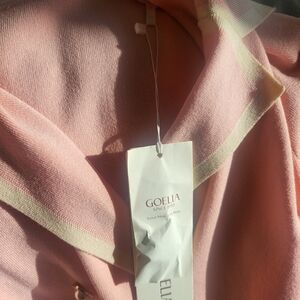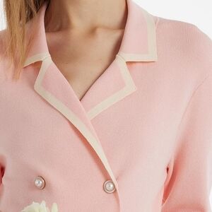 This chic pink dress features a stylish double-breasted design, perfect for any occasion. Its long sleeves (3/4 as you see on the model) add a touch of elegance. I have a black and white one too which I wore once and got lots of compliments at work