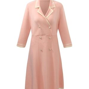 Double-Breasted Long-Sleeve Pink Dress