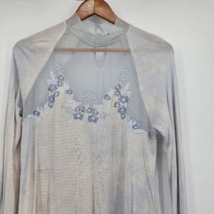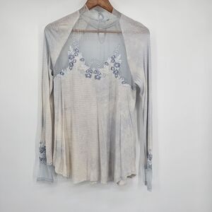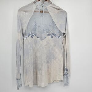 Free People Saheli Embroidered-Mesh Top Glacier Blue & Cream Ombre small
