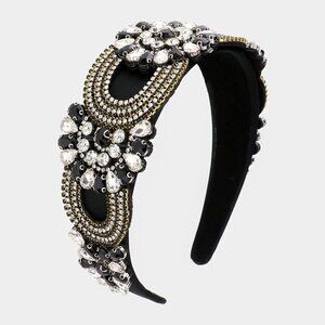 80. Black Tux Floral Multi Stone Embellished Headband