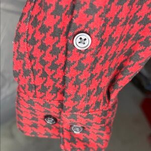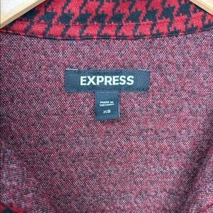 Stylish red and black checkered shirt by Express. Ideal for casual outings. Button-down design adds a classic touch.