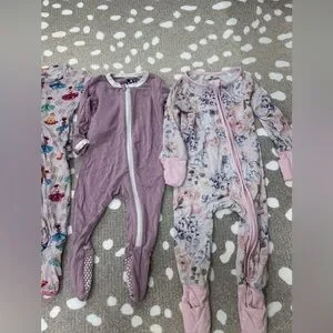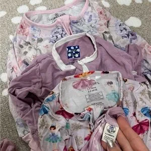 Lot of 4 bamboo footies baby girl ballerina lavender floral cadenlane watercolor