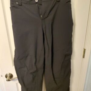 Durable black hiking pants. Practical design with multiple pockets. Comfortable, wrinkle resistant, tech fabric.