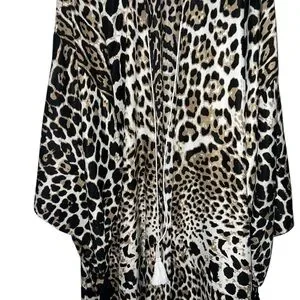 Chic and lightweight leopard print kimono with a flowing, relaxed fit. Perfect for layering over jeans, dresses, or skirts for an effortless, stylish look.