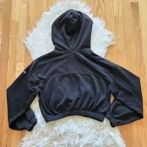 Alo Yoga Black Stadium Qiarter Zip Cropped Hoodie. Size S. In good used condition with light pilling (just shaved it with my sweater shaver!). Elastic hemline and sleeves. Kangaroo zip pockets on the front so your phone doesn't fall out! Drawstring hood. I loved this but I'm ready for a new look and looking to downsize my closet.