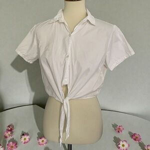 Stylish white button-down with a tie-front.
