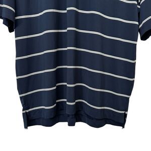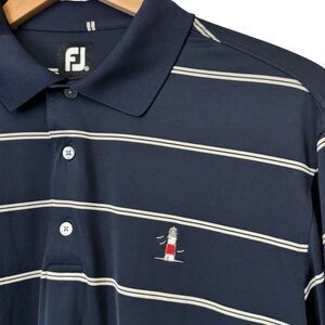 FootJoy Mens XL Navy Blue Striped Performance Polo Shirt Embroidered Lighthouse