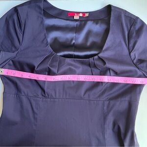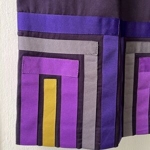 Navy/Purple sheath dress with geometric pattern in gross grain ribbon