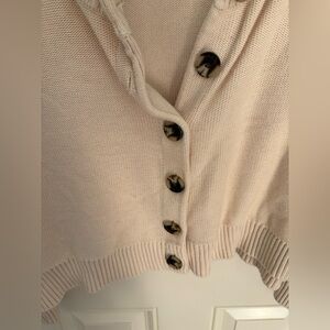 Open front cardigan with functional faux horn buttons