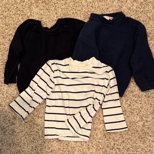 sweater set from Zara. Includes black, navy, and striped designs. Perfect for versatile styling.