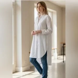 Eileen Fisher Beige and White Striped Shirt never worn size Medium