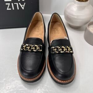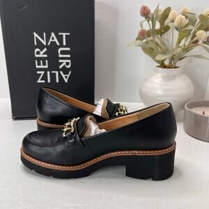 Naturalizer Desi Leather Platform Lug Sole Loafer Black Women 6 Wide