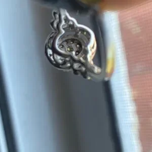 Gorgeous vintage-style ring. Sterling silver body and diamond pavé. Super pretty. Barely worn, but it wasn't an engagement ring, so no bad luck attached!