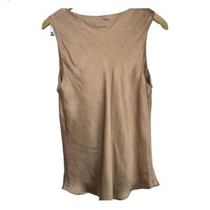 Adrienne Gold Sleeveless Cowl Neck Satin Tank Neutral Medium quiet luxury shell