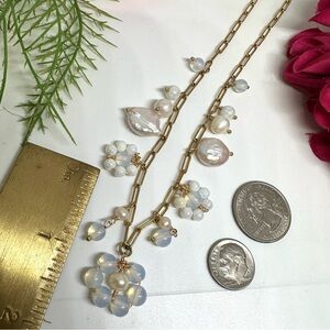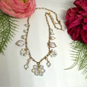 NEW⚜️Opalite & Freshwater Pearl Flower Charm Necklace