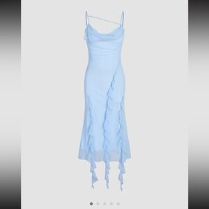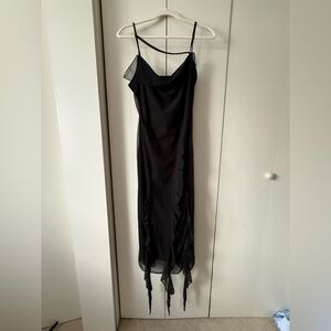 NWT Cider MESH RUFFLE HEM RUCHED MIDI DRESS Size L (US 8) in Black 🖤