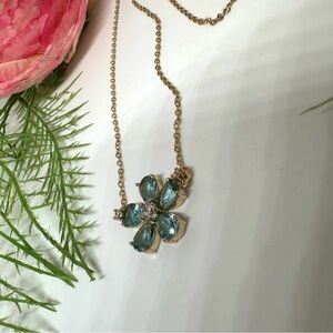 NEW⚜️Aqua Blue Crystal Flower Charm Necklace