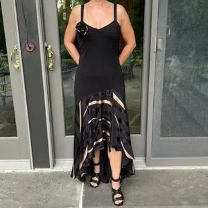 NWT Joseph Ribkoff Black/Copper High/Low Dress AKA the "Tango Dress"
