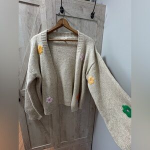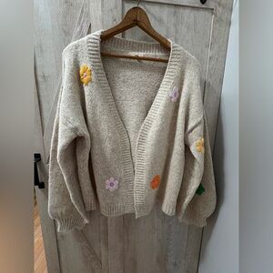Easel Oversized Floral Appliqué Cardigan – Size M (Fits L)