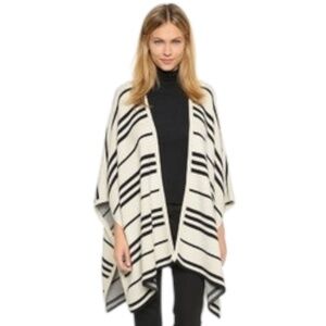 **Alice + Olivia Raelyn Striped Open-Front Poncho | Cream & Black | One Size**