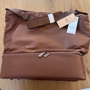 Sold out in this colorway! Maple color, BEIS Crescent Weekender, NWT. The perfect bag for storing your entire day in one place — your laptop here, a water bottle there, and a change of shoes in their own separate compartment.