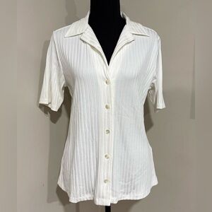 Banana Republic Cream Ribbed Button-Down short sleeve Shirt