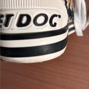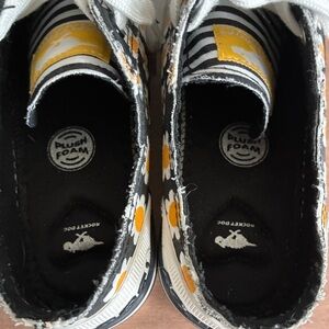 In great condition barely worn (3times) with an adorable frayed look around the opening of the shoe Classic stripes and bold daisy's add more fun to your staple lace-up sneaker. Show off your flower power and get ready for the compliments with this eye catching women's sneaker..