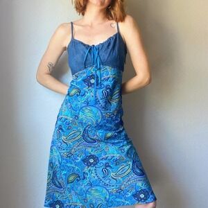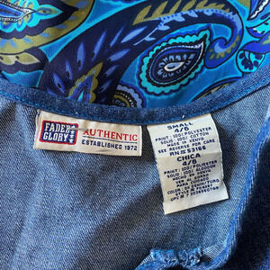 Vintage Y2K Faded Glory Blue Paisley Denim Babydoll Midi Dress