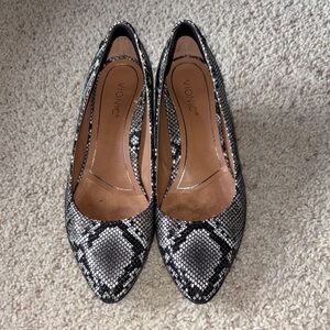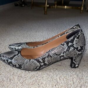 Vionic Black and Gray Snakeskin Heels