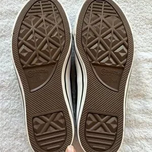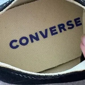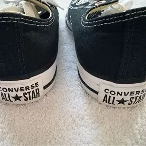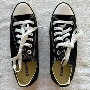Sleek black sneakers with white accents. Timeless Converse design. Brand new never worn - these are unisex so can be men’s size 5 or women’s size 7.