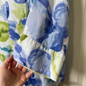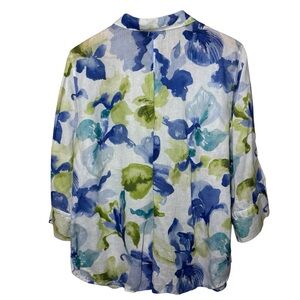 Chico’s No Iron Top Blouse 100% Linen 3 XL 16 Floral Button Up Resortwear Coast