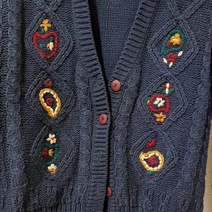 Vintage Navy Cardigan with Multicolor Embroidery