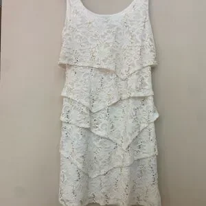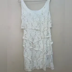 New Ronni Nicole White Tiered Ruffled Sheath Dress
