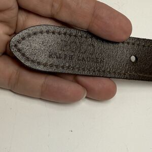 Size 32 with top of buckle to first hole measuring 33 inches, to last hole 37 inches and is a total of 39 3/4 inches. Belt is in great condition but leather on buckle hole side shows a little wear around the edges (Shown closely in last picture). Comes from a smoke free home.