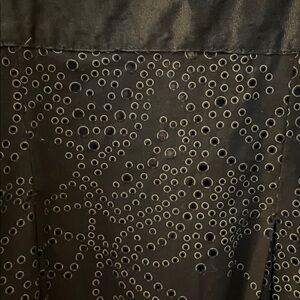 Didi strapped black eyelet, lined in brown with netting at the scalloped bottom, midi dress. Zips on the side. Adjustable straps. Satin ribbon on the top. XS. Pit to pit:17 inches. Length:47 inches.