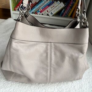 Chic Coach shoulder bag in cream leather. Features elegant silver hardware. Ideal for daily wear! In excellent barely used condition.