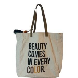 Elevate your style with this elegant cream tote bag featuring an inspirational print. Perfect for adding a touch of sophistication to any outfit.