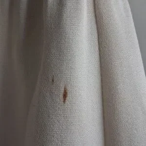 HAS A FEW TINY SPOTS OF DISCOLORATION/ STAINS OTHERWISE GREAT CONDITION. ELASTIC WAISTBAND. BACK ZIP/ HOOK & EYE CLOSURE. FULLY LINED.